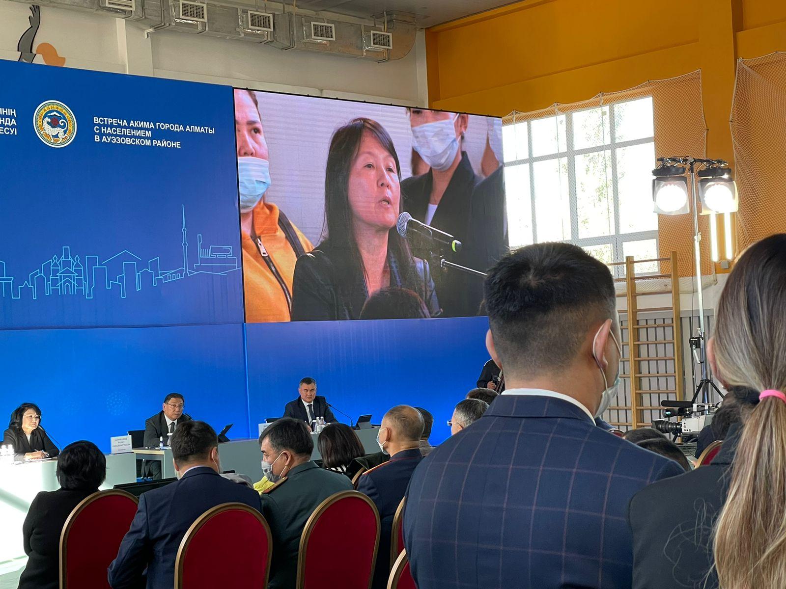 Алматы әкімімен кездесу барысында тұрғындар жолдарды жөндеу, кәріз және электр желілерін абаттандыру және т.б. мәселелерін көтерді.