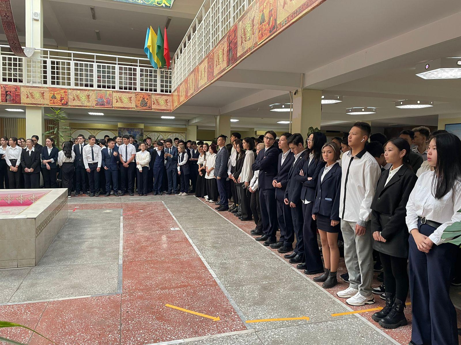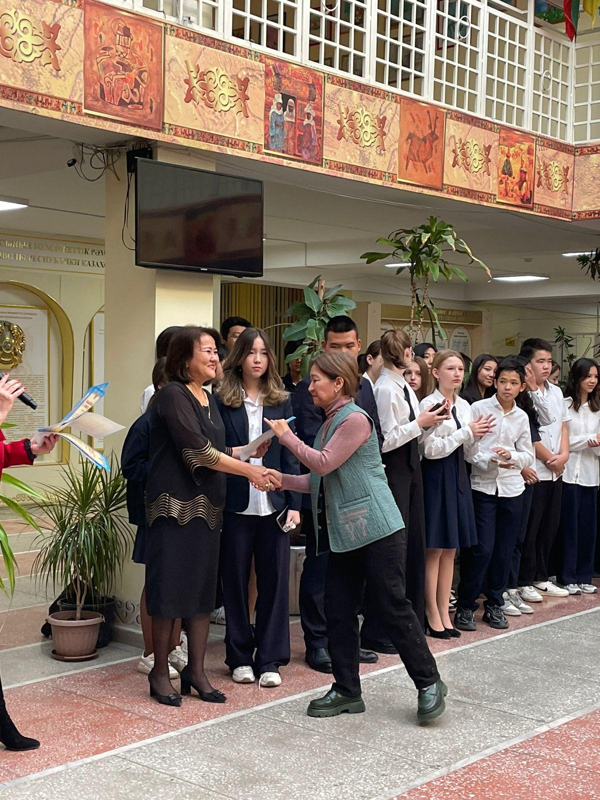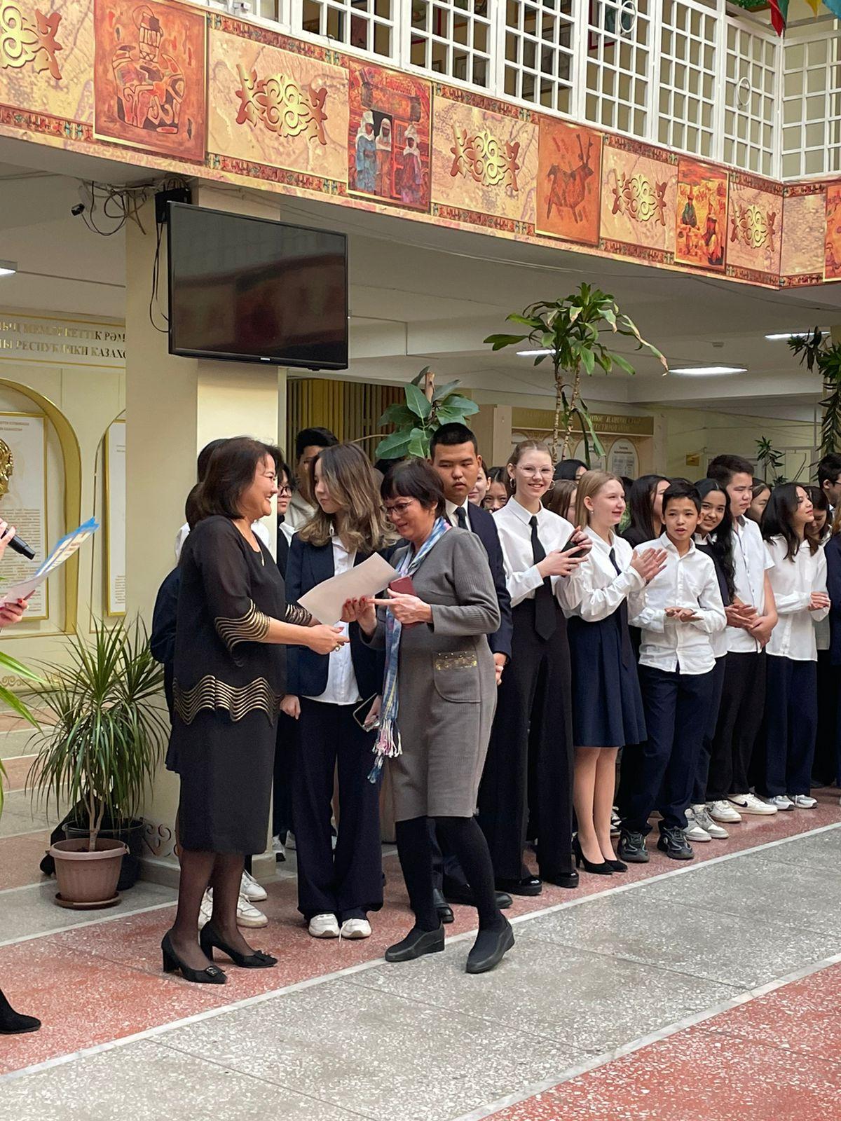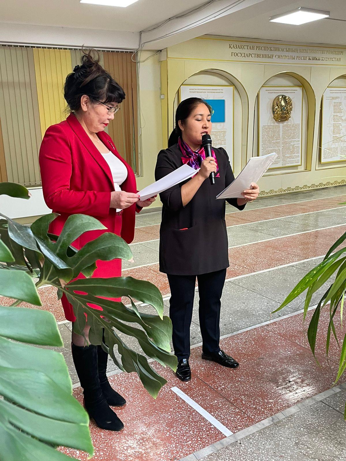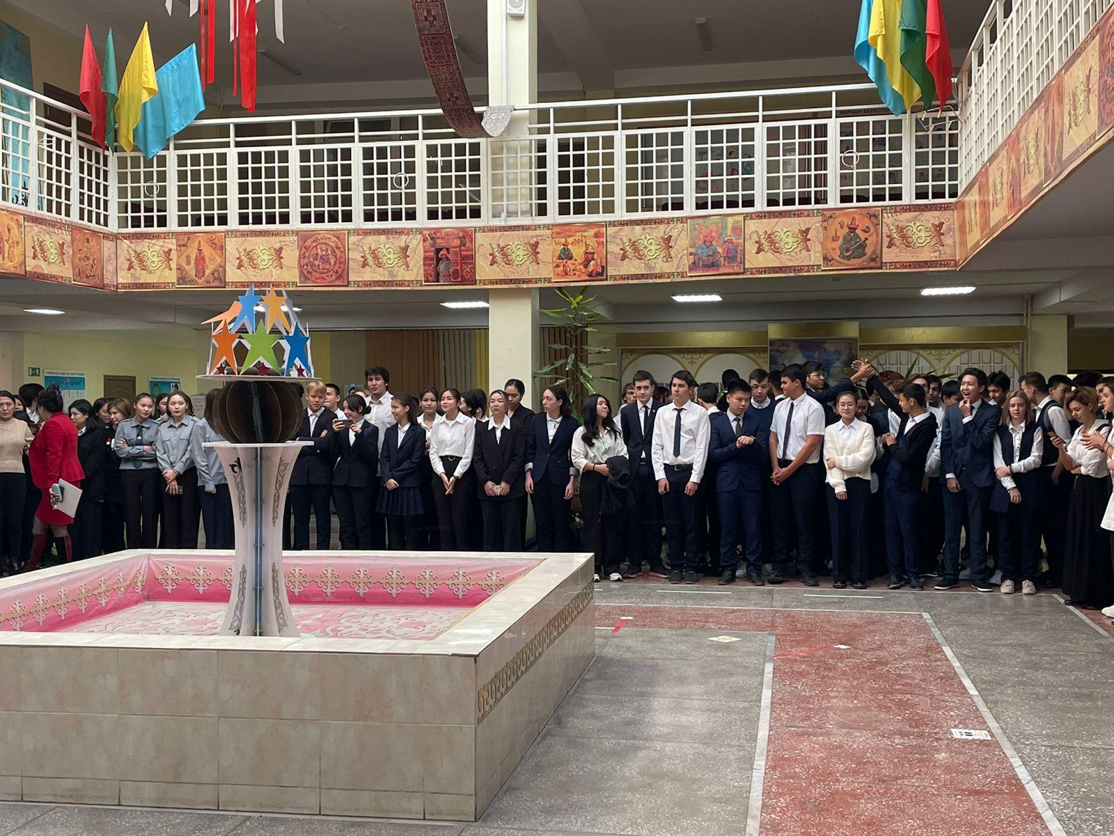 #117 ЖББМ 2022 ж 21 қазан айында Республика күніне орай салтанатты жиын өтті. Салтанатты жиынды Мемлекеттік әнұранмен ашты. Салтанатты жиынға 9-10-11 сынып оқушылары қатысып,әрі пән бойынша олимпиада мен спорттық жарыстардан орын алған оқушыларды марапаттады