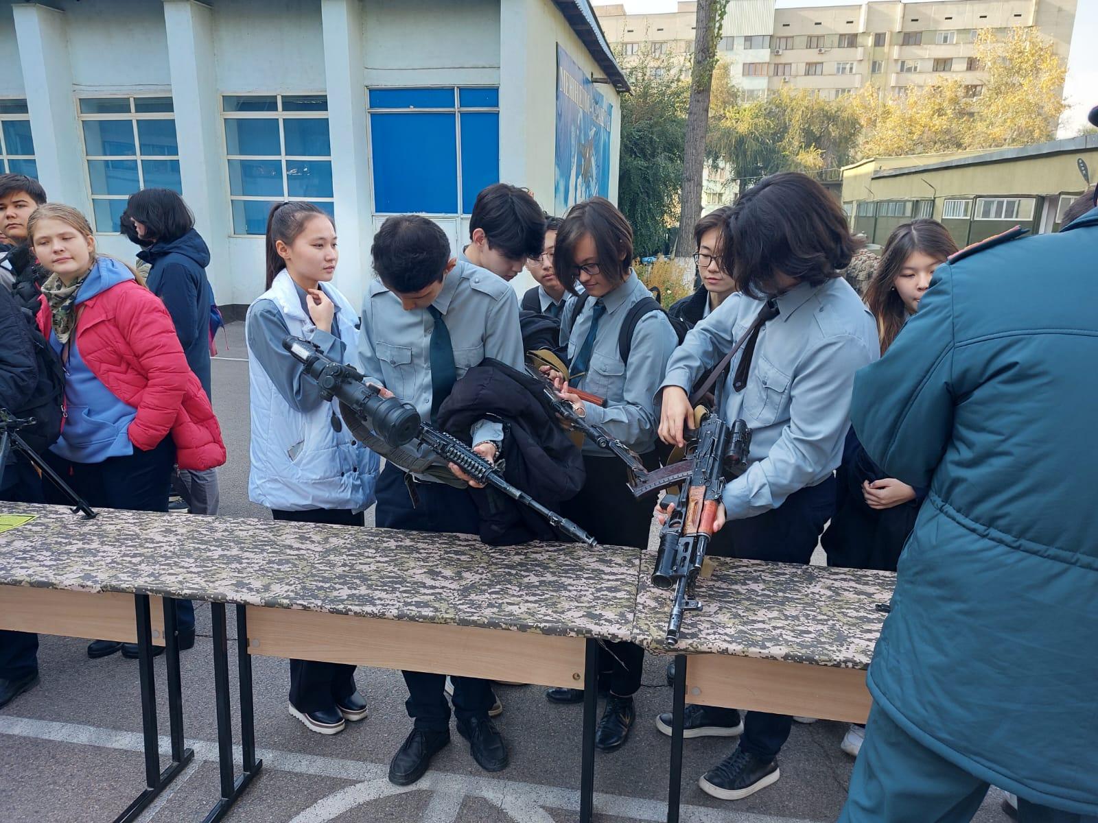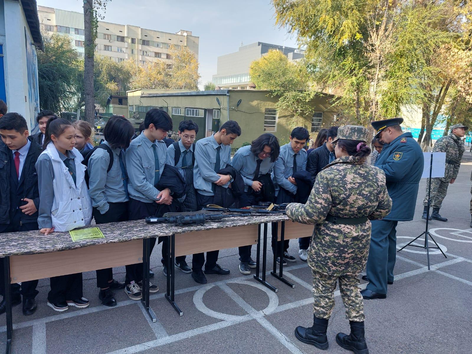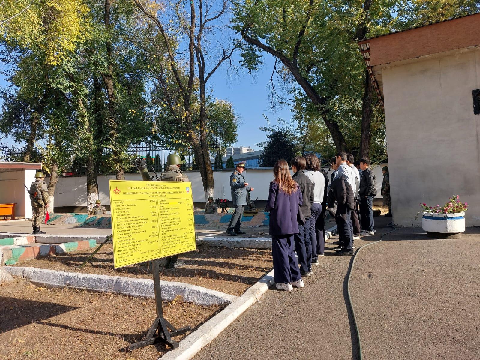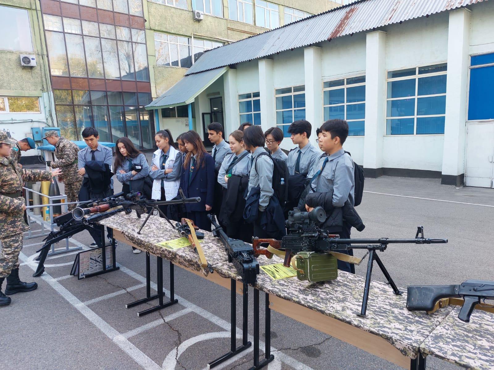 Қаныш Сәтбаев атындағы ҚАЗҰТУ мен #117ЖББМ құрылған жоспар бойынша "ашық есік"күні белгіленіп, алғашқы әскери дайындық жаттығуларын үстіміздегі жылдың 2022ж.21 қазан айында 10"Б" сыныбымен өткізген болатын. 1941-1945 ж.ж.Ұлы Отан соғысында қаза тапқан жауынгерлеріміздің рухына бағыштап, үнсіз минутпен еске алды Мұражайда 10"Б" сынып оқушылары Қазақтың Ұлттық университетінің әскери бөлім кафедрасында болып, студенттермен жақынырақ танысып, өз ойларын бөлісті.Оқушыларға қару-жарақтың түрлерімен таныстырды. Сонымен қатар әскери автокөліктеріменде толықтай танысты.Еліміздегі әскери заттардың түрлерімен таныстырылды. Әр азамат өзінің алдағы уақытта борышын түсіну керек ,жауапкершілікті арттыру мақсатында қару түрлерінің қалай,қайда жасалатыны туралы ой бөлісті. Әскери заттар толығымен таныстырылды.