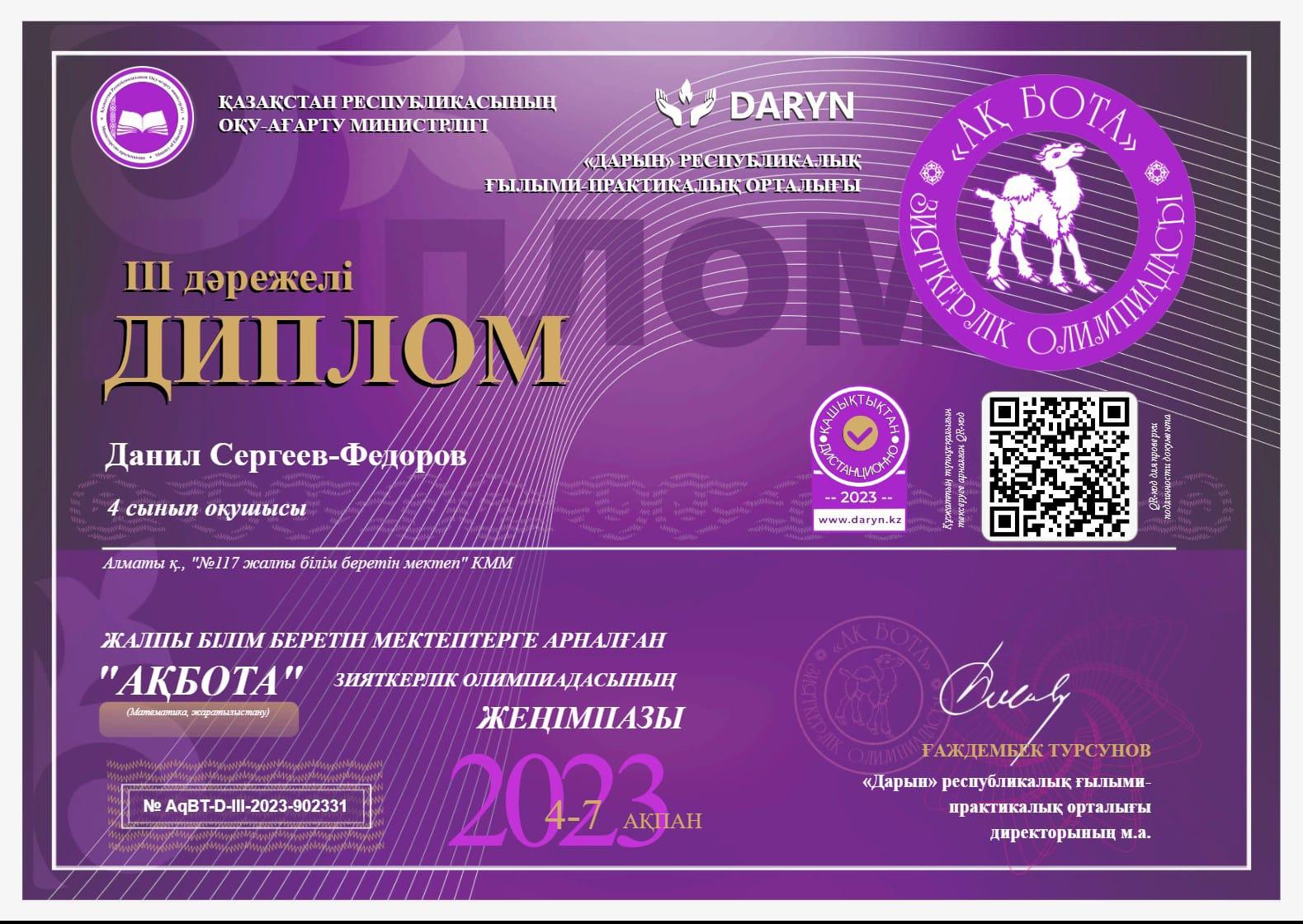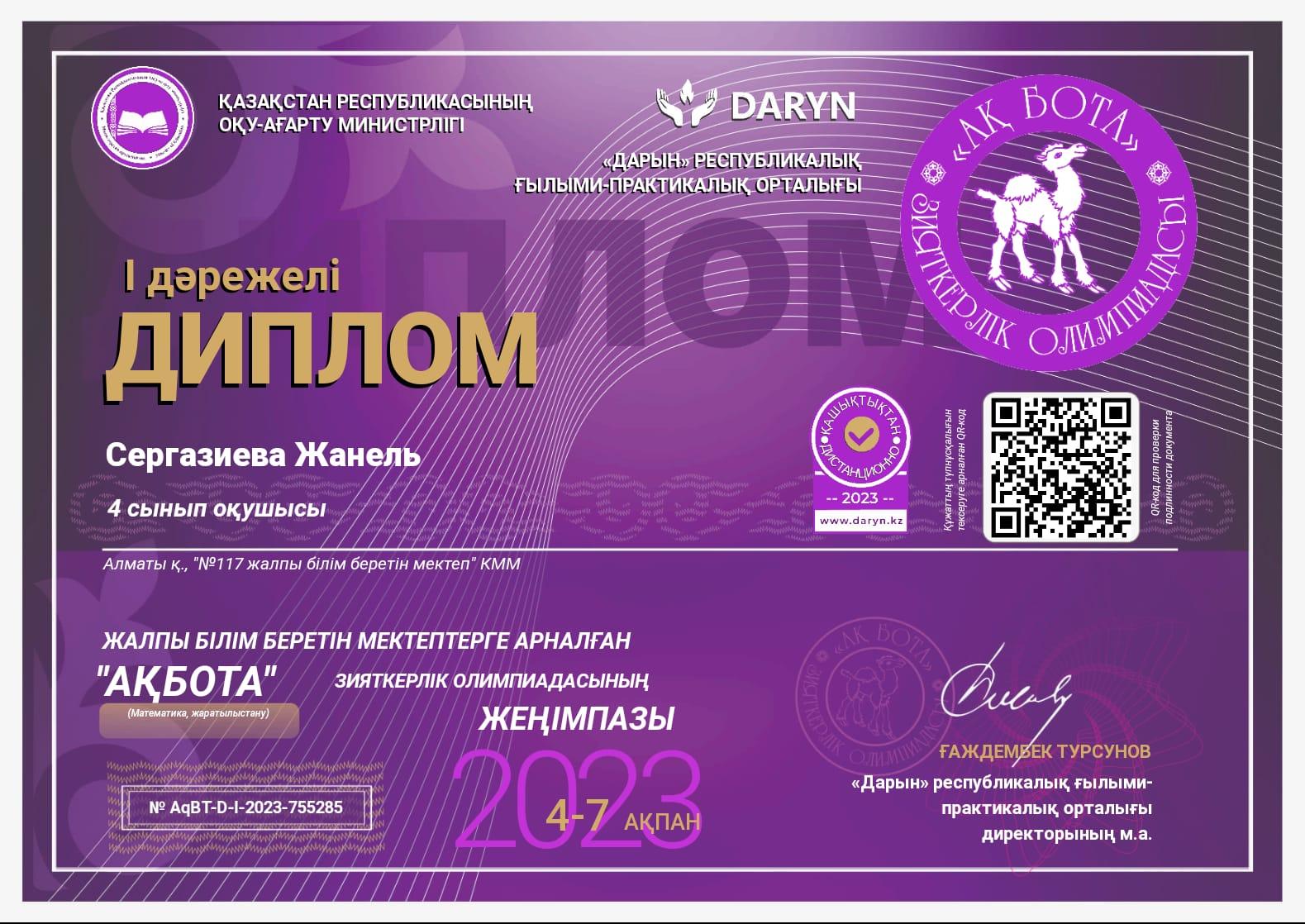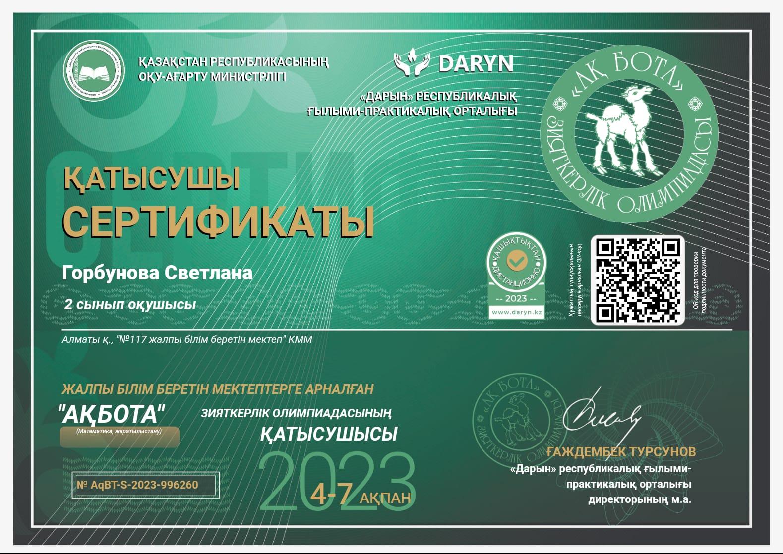 Дарынды оқушыларды анықтау, математикалық сауаттылығын арттыру және ғылым негіздері бойынша білімдерін тереңдету мақсатында 《Дарын》 РҒТО ақпан айынан бастап ЖББМ 1-11 сынып оқушылары арасында жаратылыстану-математикалық бағыт бойынша «АҚБОТА» зияткерлік олимпиадасын өткізді. 2023 жылғы 4-7 ақпан.