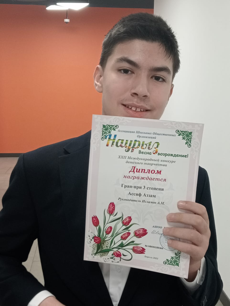 03 апрель 2023 0 1 2 3 4 5 Құттықтаймыз! #117 ЖББМ Халықаралық конкурстан өз туындысы үшін бас жүлдені жеңіп алған Ассиф Азимді құттықтаймыз. Жетекші мұғалімі: Исламов А.М. Құттықтаймыз! Осы беттің QR-коды:QR-код этой страницы: