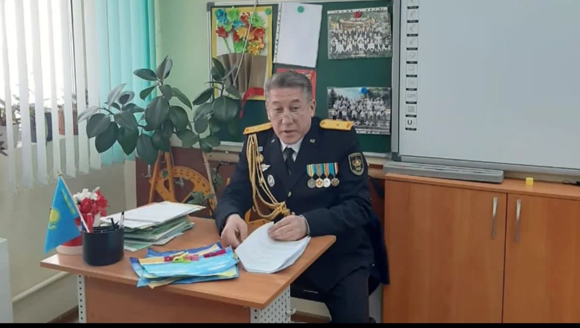 Отан қорғаушылар күніне орай №117 ЖББМ 3 "И" сыныбында тақырыптық сынып сағаты өтті. Ата - ана әрі әскери полиция бөлімінің бастығы, отставкадағы әділет майоры - Тұрғанбеков Мұратбек Әлібекұлы шақырылды.