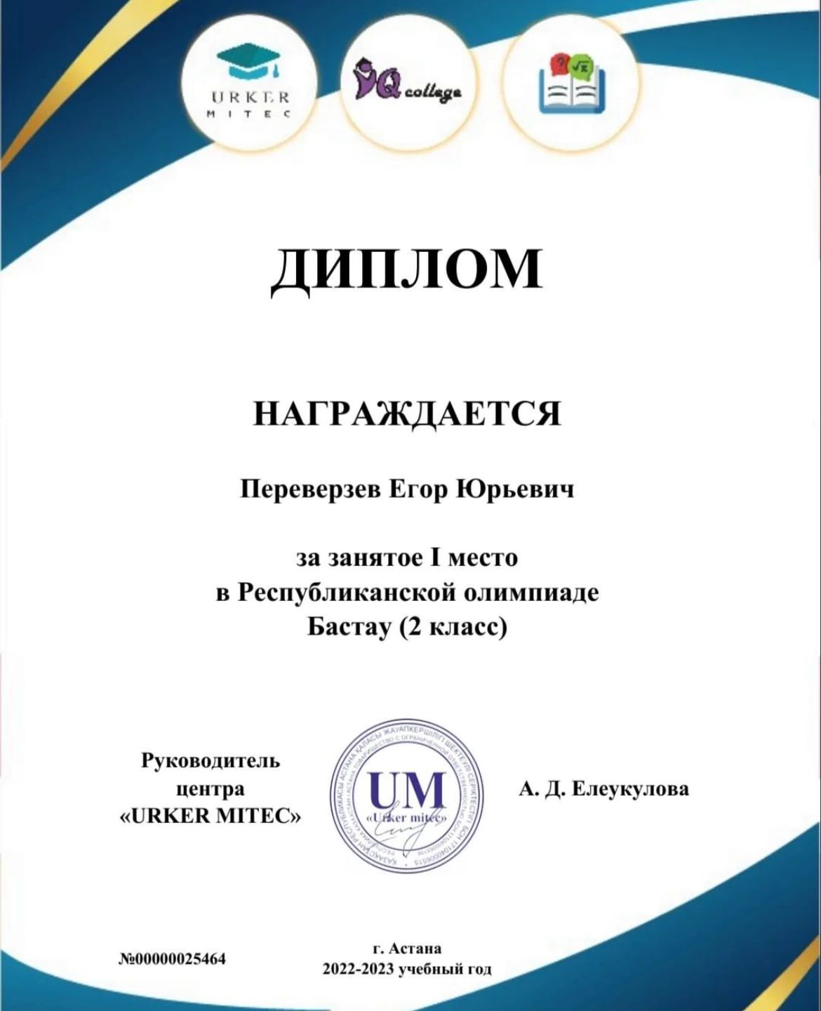 19 май 2023 0 1 2 3 4 5 Құттықтаймыз! 🏆🏆🏆 2 сынып оқушылары Слоян Миран Андроевич және Переверзев Егор Юрьевичті Республикалық Бастау олимпиадасында иеленген 1 дәрежелі дипломдарымен құттықтаймыз! 🏆🏆🏆 Осы беттің QR-коды:QR-код этой страницы: