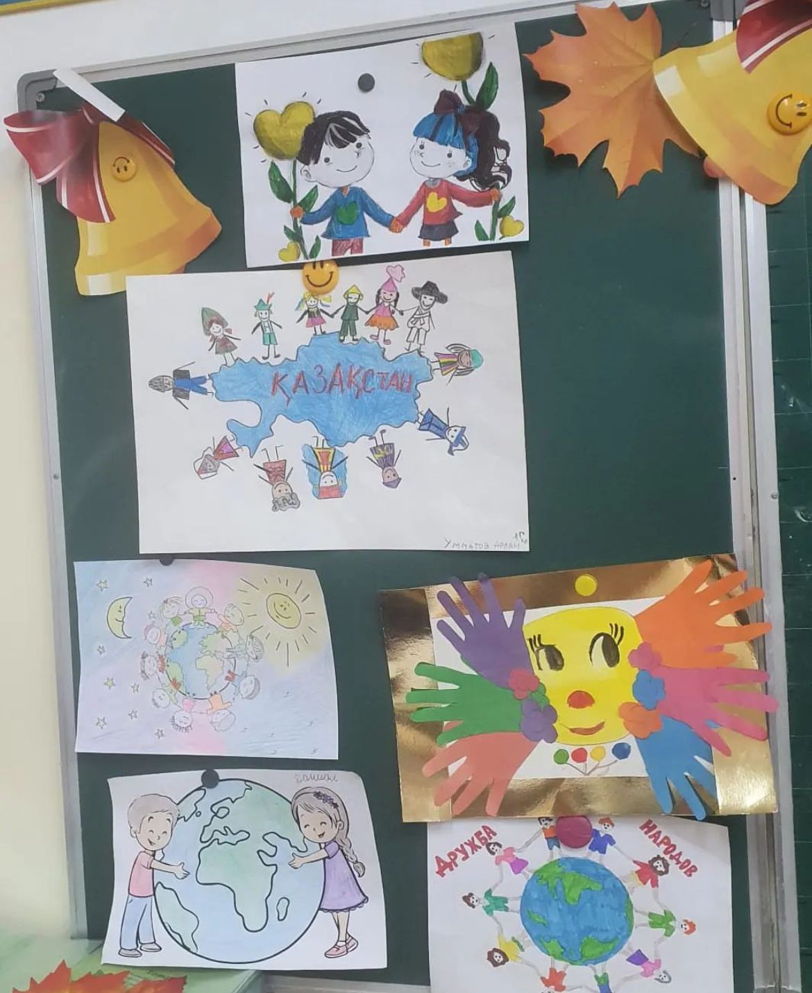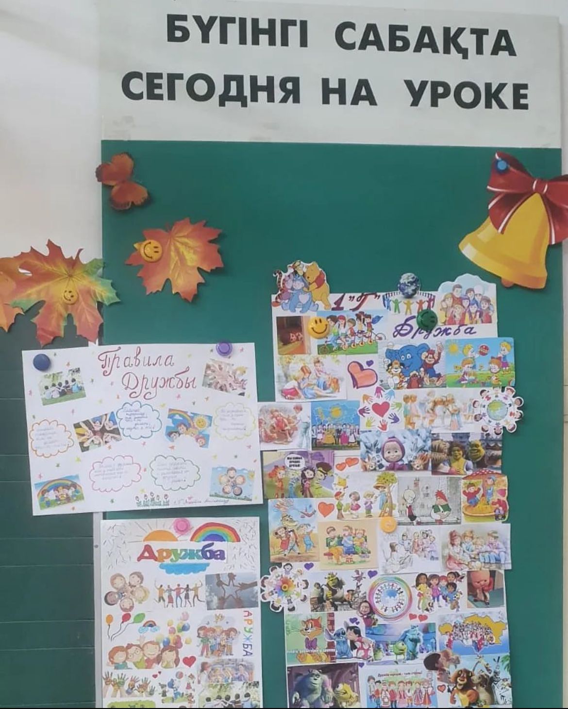 Бүгін біз ең мағыналы, терең, өмірлік маңызды тақырыптардың бірі – достық тақырыбына қозғадық. 1 "Г" сынып оқушылары "Достық" тақырыбындағы үздік коллаж байқауына белсенді қатысты. Олар достық ережелерімен танысып, ертегі кейіпкерлерін - достарын еске алды.