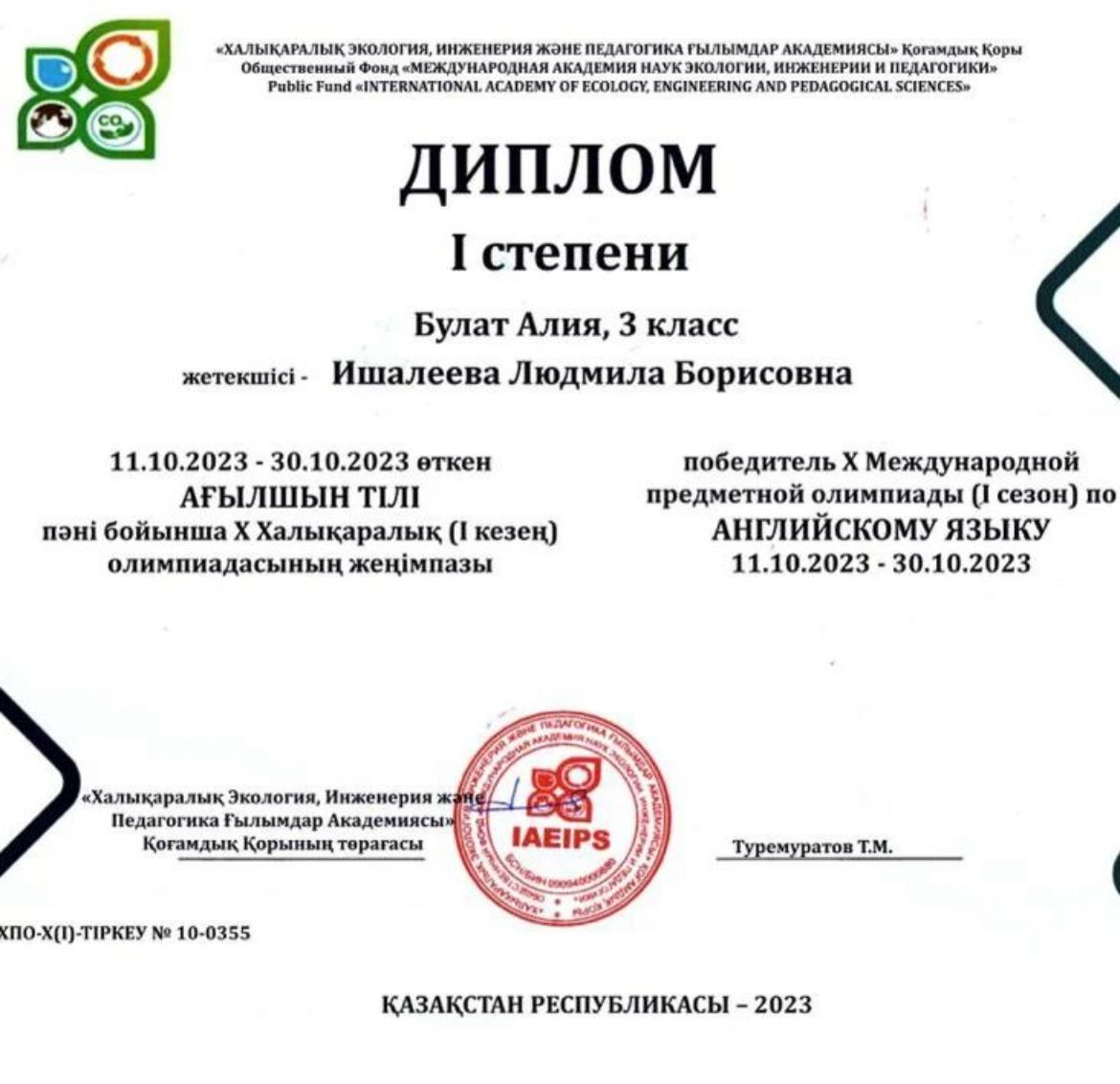 17 ноябрь 2023 0 1 2 3 4 5 Оқушыларымызды құттықтаймыз👏👏👏 3 "А" сынып оқушылары Болат Алиша мен Болат Әлияны ағылшын тілі пәнінен халықаралық пәндік олимпиадасындағы жеңісімен құттықтаймыз! Олар І дәрежелі дипломмен марапатталды. Оқушыларымызды құттықтаймыз! Осы беттің QR-коды:QR-код этой страницы: