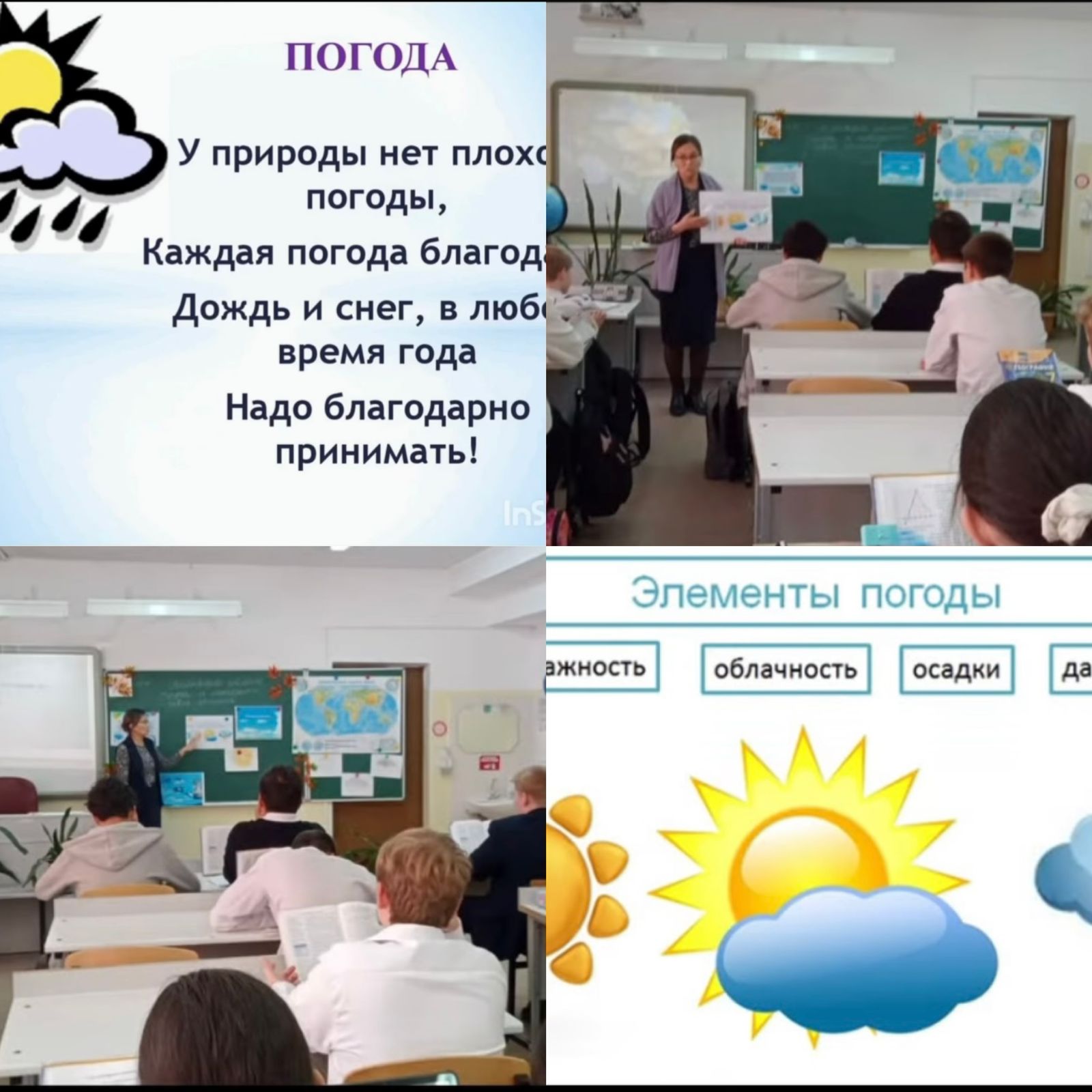 7 "Е" сыныбында "Ауа райы және метеорологиялық элементтер" тақырыбында ашық сабақ өтті. Балалар ауа-райының элементтерімен, өлшеу құралдарымен танысып, "жел раушандарының"сызбасын жасады. Ауа-райы, экологиялық ойлау туралы білімді қалыптастырумен қатар, балалар қорытынды жасауға, өз бетінше және топта жұмыс істеуге үйренді.