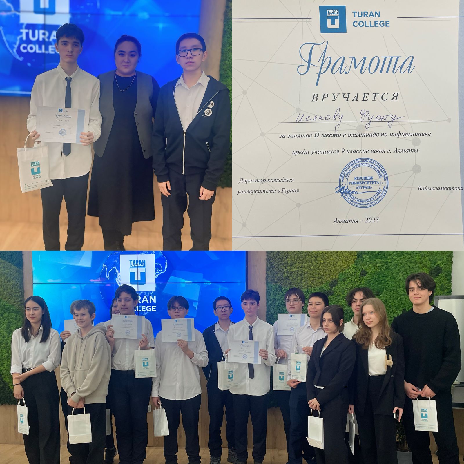 9 "Б" сынып оқушысы Исянов Фуатты, сондай-ақ, жетекшісі Лаура Еранқызын 9-сынып оқушылары арасында Тұран колледжі базасында информатика пәні бойынша өткен олимпиададан жүлделі ІІ орын иеленуімен құттықтаймыз! Жарайсыңдар! Жеңістерің көп болсын!#біртұтас_тәрбие_алматы