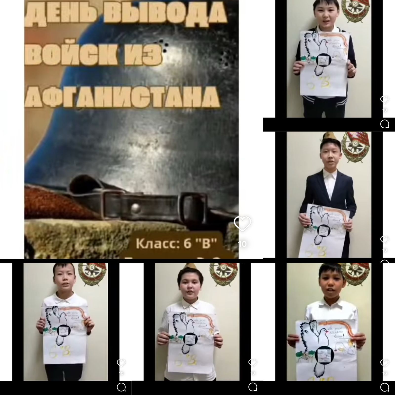 7 «В» сыныбы «Ауғанстаннан әскерлердің шығарылған күні» тақырыбында кеңес жауынгерлерінің ерлігі мен қаһармандығын көрсету, жауынгерлердің ерліктеріне құрметпен қарау, сонымен қатар оқушылардың Отан туралы білімдерін кеңейту мақсатында бейнеролик дайындады.