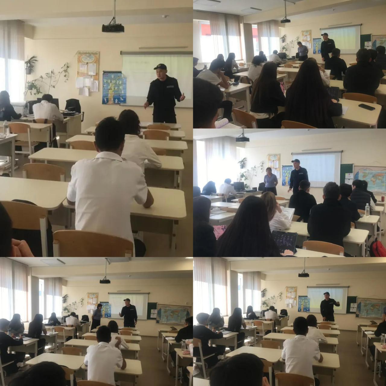 Инспектор тарапынан пайдалы кеңестер беріліп, өмірден алынған нақты мысалдар келтірілді, сондай-ақ оқушылардың сұрақтарына жауап берілді.