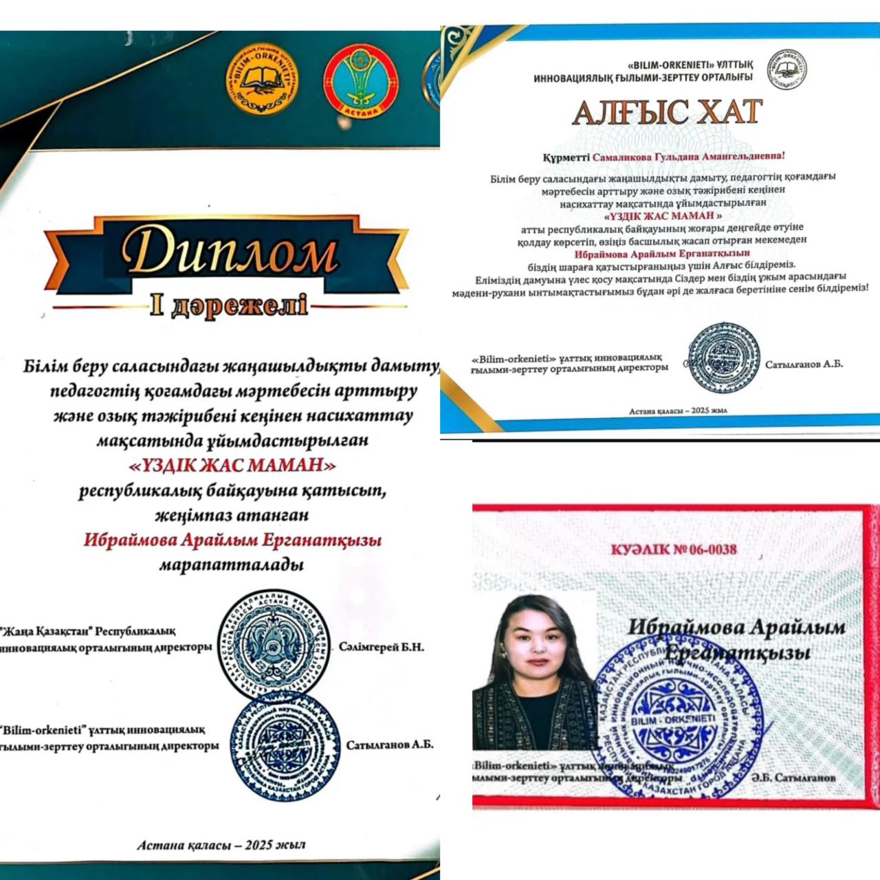 Ибраимова Арайлым Ерганаткызы, став победителем данного конкурса,
