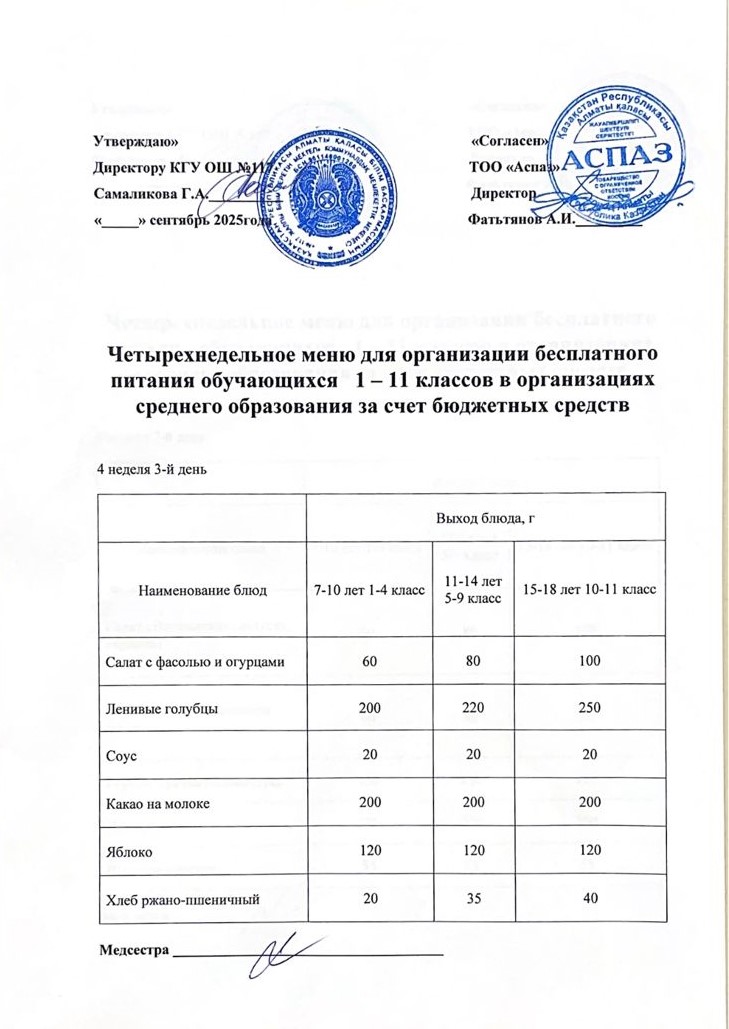 2 апта ас мәзірі