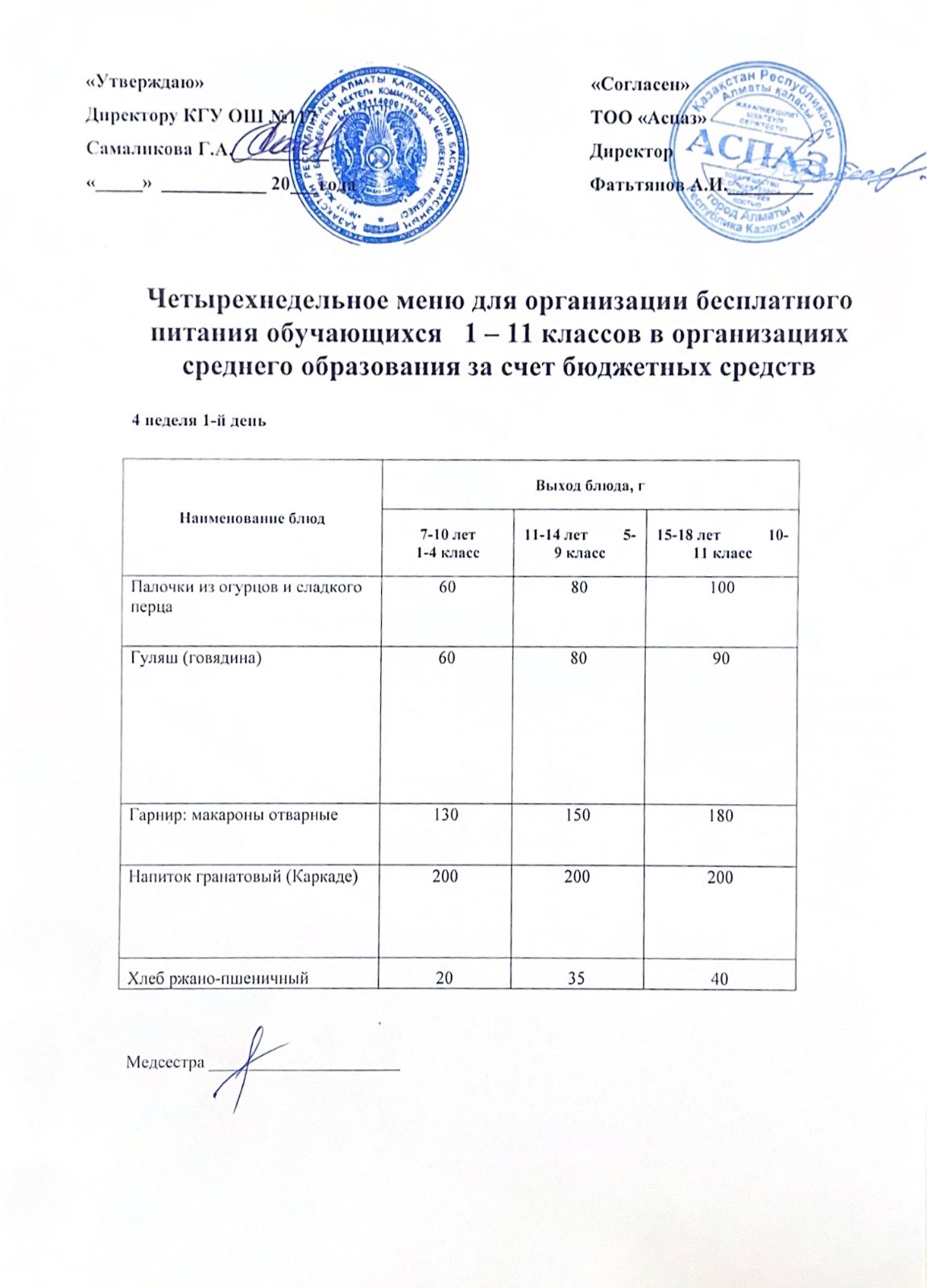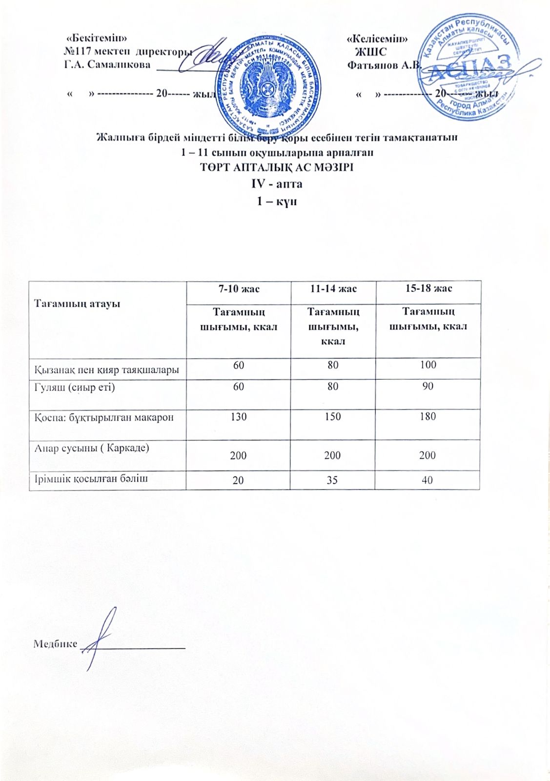 2 апта ас мәзірі