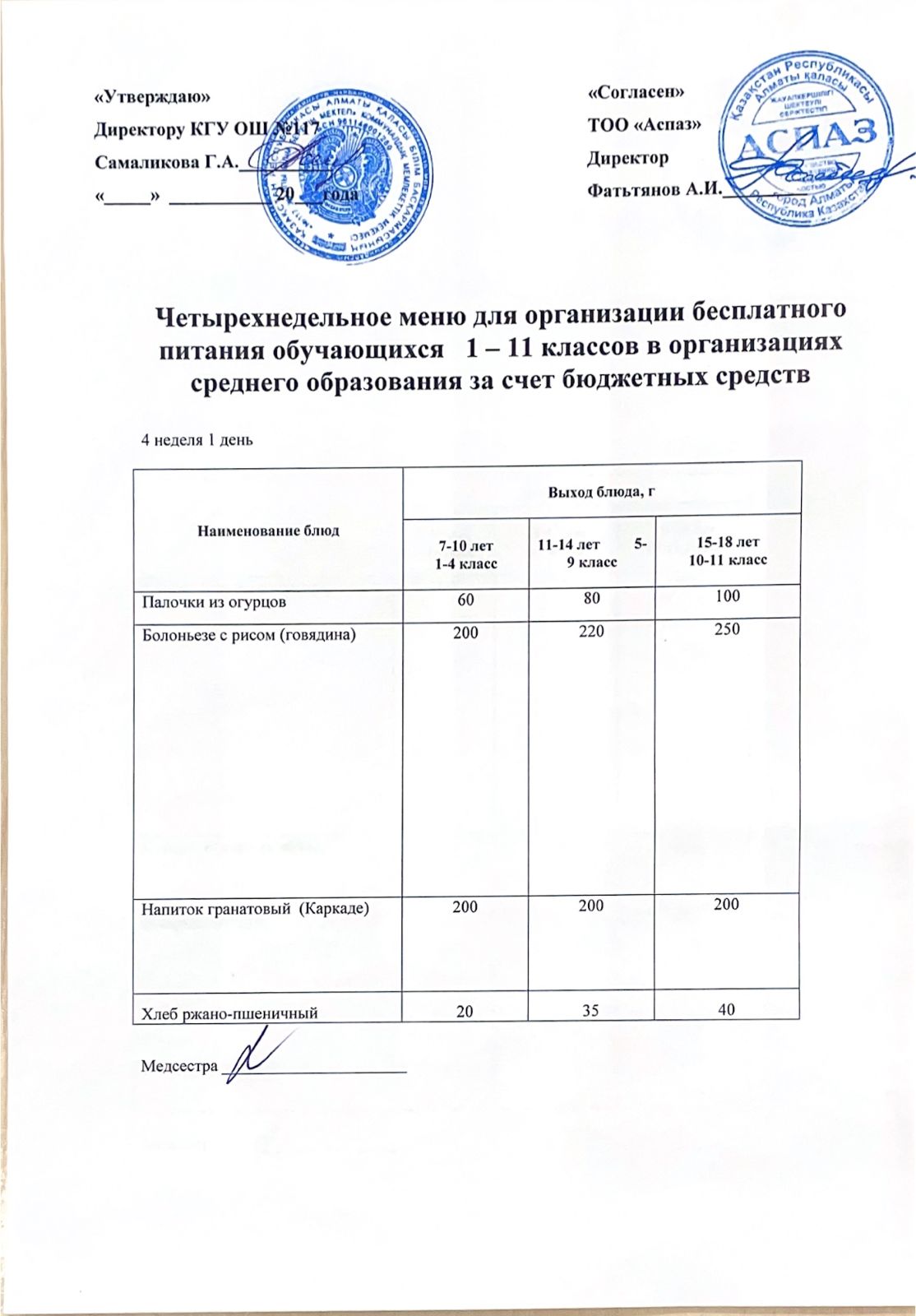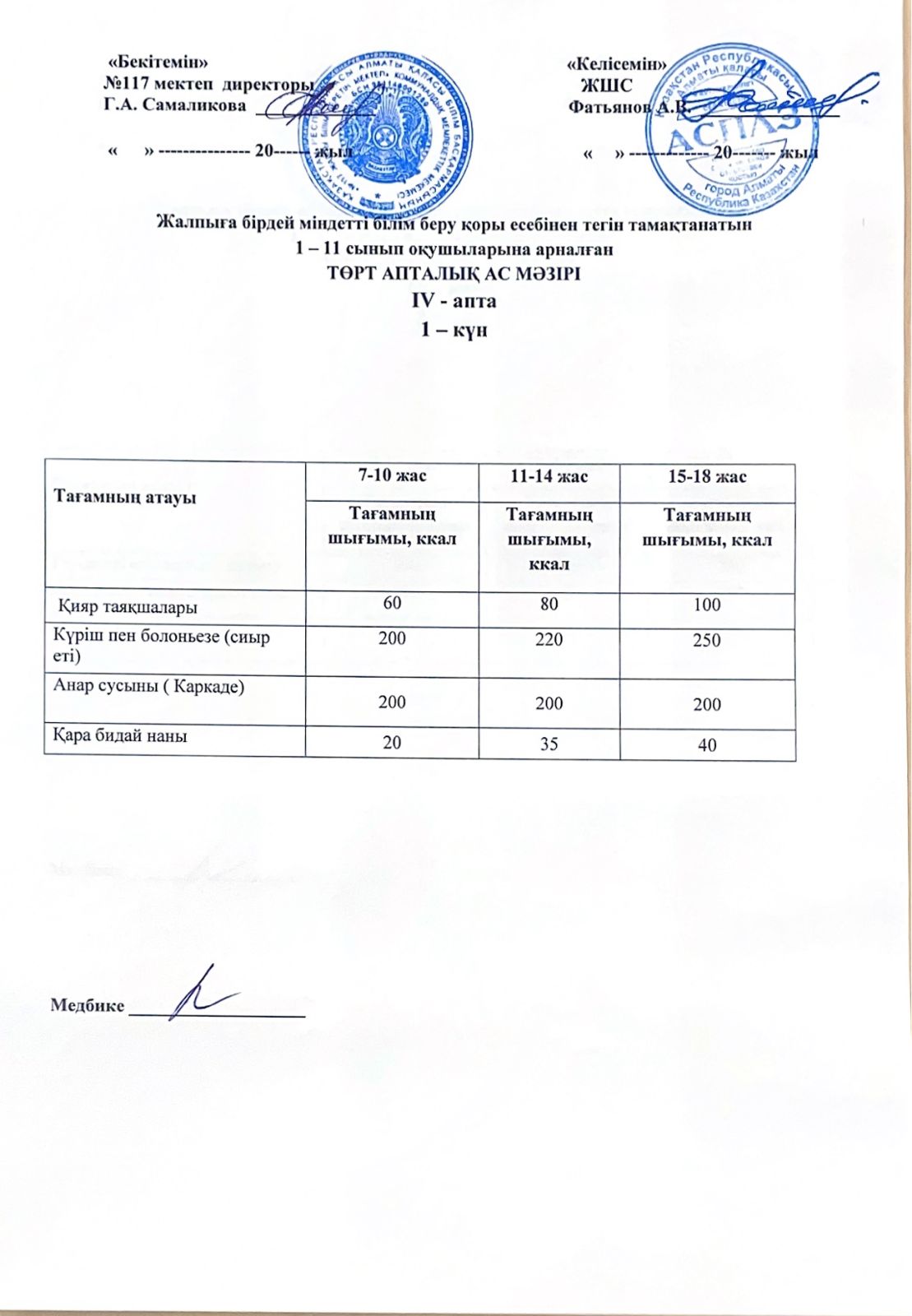 2 апта ас мәзірі